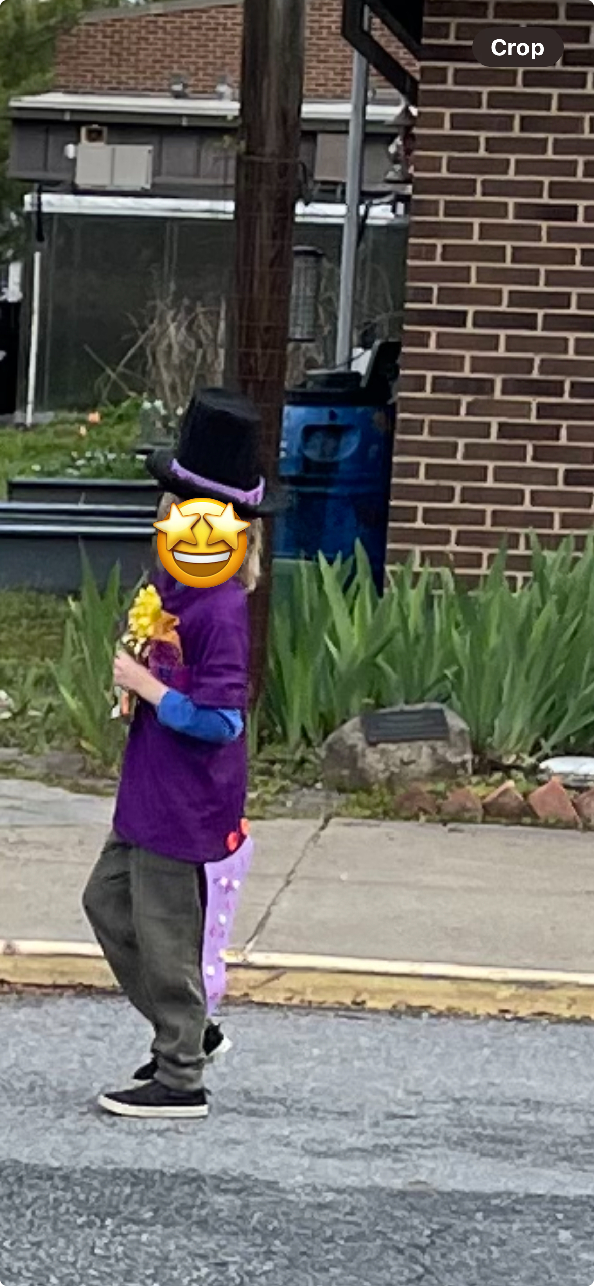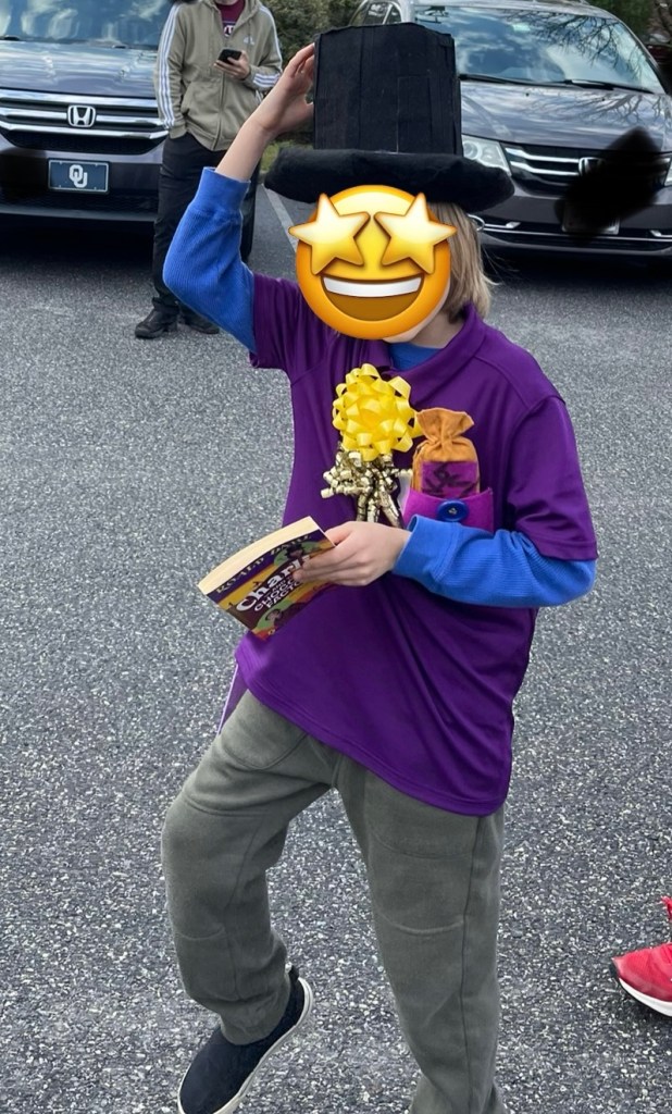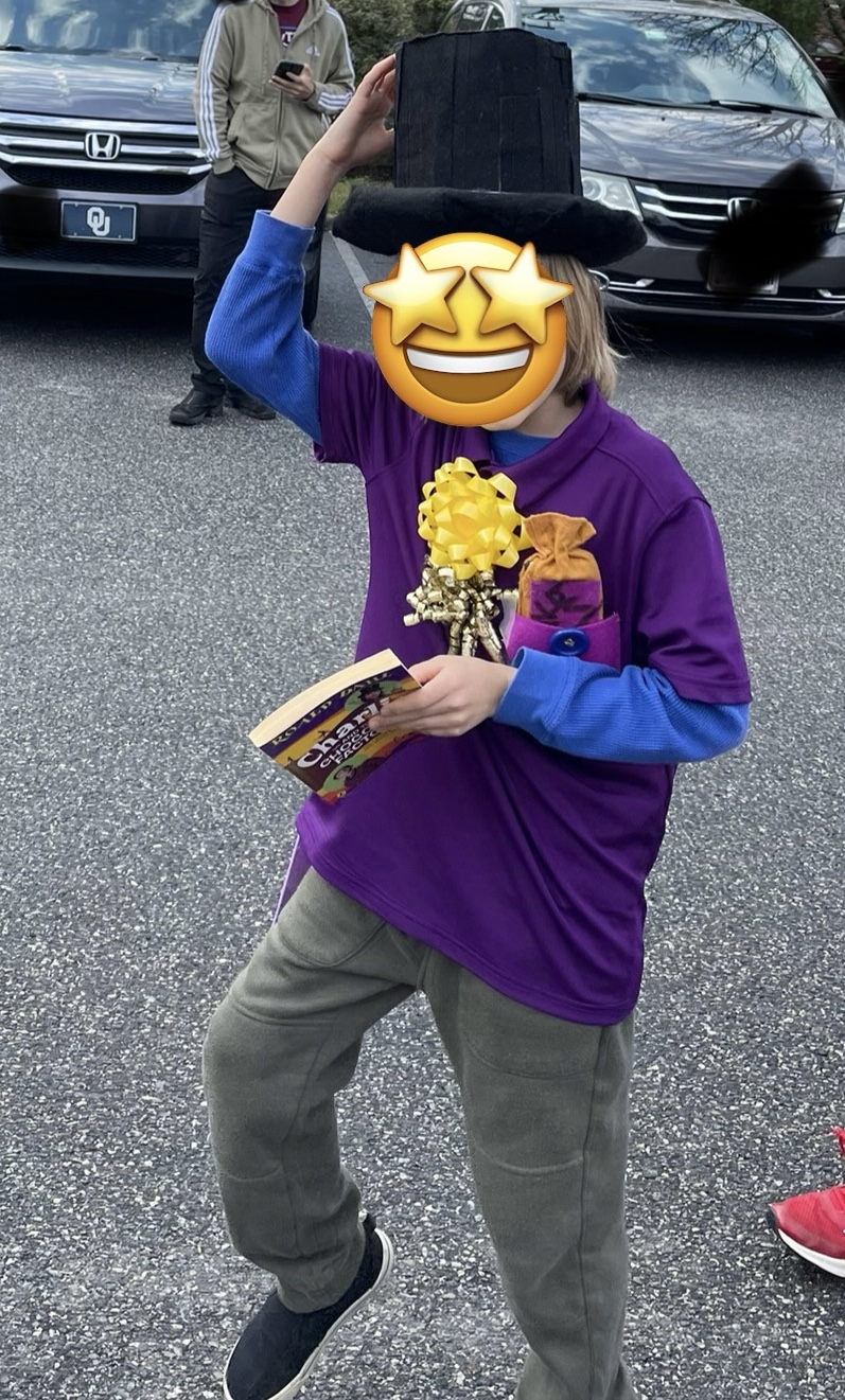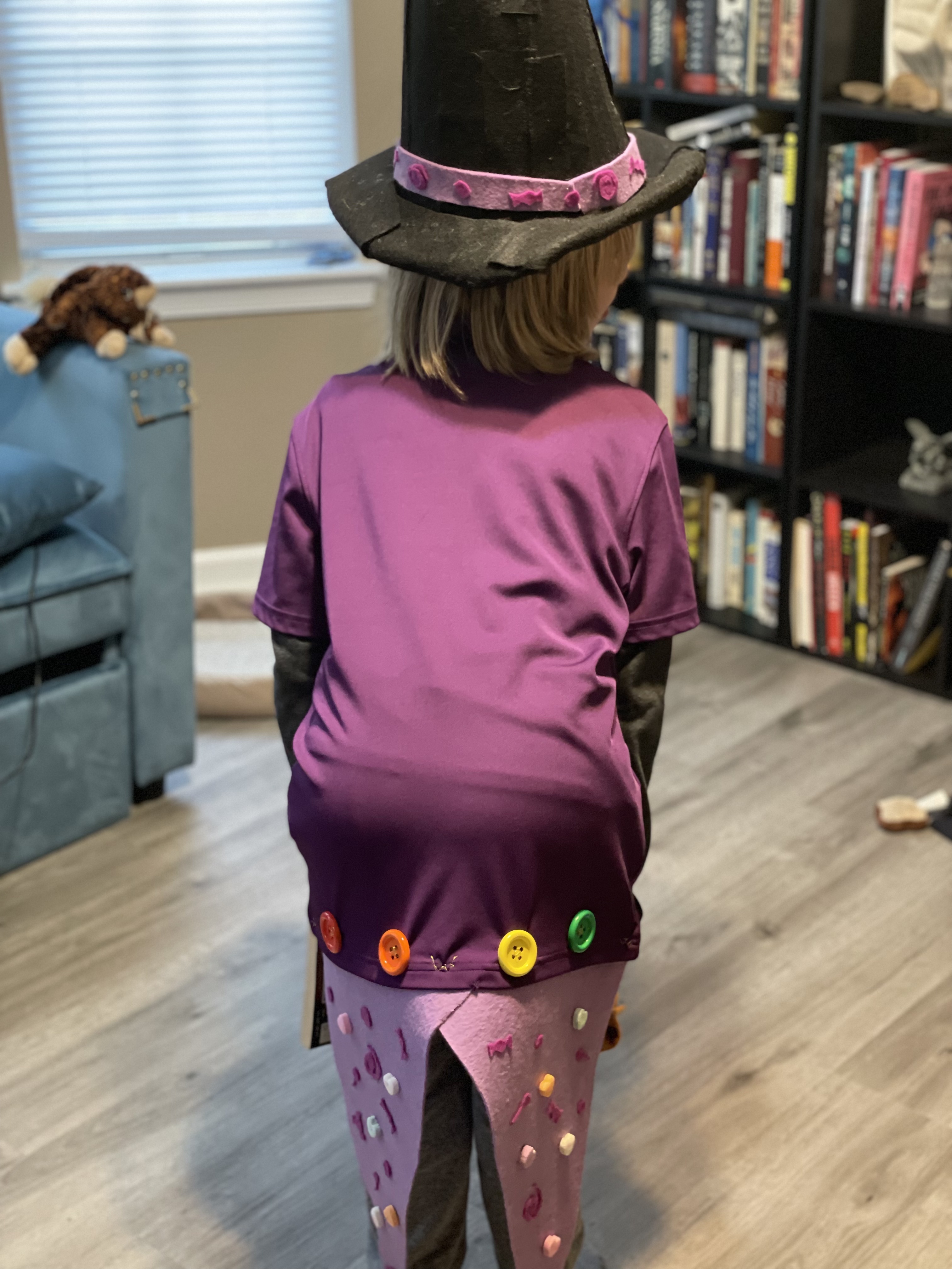 We’ve been knee deep in Wonka lately, and for this year’s book parade (which sadly I couldn’t attend due to a MRI on my foot!), the child wore our interpretation of Roald Dahl’s famous, if not notorious, chocolatier. It was a fun little get-up to make!